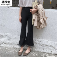 韩雅俏(HANYAQIAO)2018新品脚口拼接九分裤修身百搭黑色喇叭显瘦弹力裤女