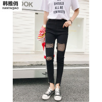 韩雅俏2018新品渔网袜修身显瘦大码黑色打底裤女外穿网纱破洞九分裤女