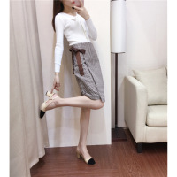 珂依舍2017秋装新款#2017秋冬季针织衫毛衣上衣+格子半身裙小香风两件套套装女