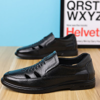 夏天新款真皮凉鞋头层牛皮爸爸鞋洞洞款商务正装中老年镂空鞋子男