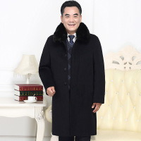 中老年人男长款毛呢子大衣加绒加厚风衣爸爸外套爷爷装冬装呢大衣