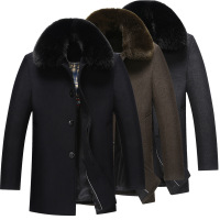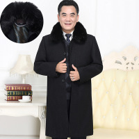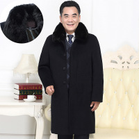 冬季中年男士大衣长外套加绒加厚爸爸装中老年人男长款毛呢子大衣