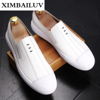 夏季男士白色乐福鞋套脚皮鞋日常低帮休闲鞋透气板鞋内增高懒人鞋个性小白鞋IT0620622白+标准版