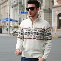 秋冬新款男式毛衣时尚青年英伦立领提花粗纺羊毛衫男加厚棉衣