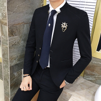 锦铭七玥2017秋季男士西服套装日系街拍中山装中华立领西装男