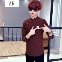 男装白衬衣潮流修身长袖衬衫男纯色学生青年韩版休闲寸衫男士立领新款衬衫男长袖薄款衬衣