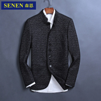 秋冬男士西装外套韩版修身中年立领中山装休闲小西服男单西上衣潮