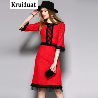 YIBUSHENG 法式绑带红色吊带连衣裙新款欧美ins修身开叉礼服度假裙