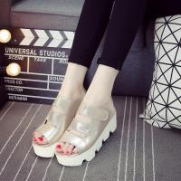 2017新款厚底松糕金色银色凉鞋女夏季防滑软底魔术贴605