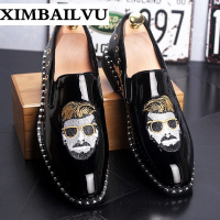 品牌都市时尚男士增高皮鞋韩版尖头套脚懒人鞋潮亮面皮鞋男青年夜店个性发型师休闲皮鞋