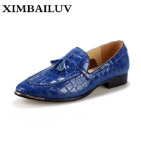 路蒙卡帝品牌2017欧美休闲皮鞋时尚潮流鳄鱼纹流苏亮面皮鞋一脚蹬轻便懒人鞋型男尖头有跟皮鞋