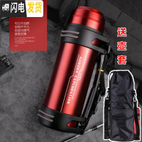 三维工匠保温杯大容量2000便携暖水壶瓶车载旅行水杯户外保温壶2 红色1900+壶套