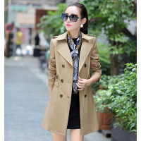莞馨(wanxin)2016春装新款韩版风衣女中长款修身显瘦双排扣纯色大码长袖外套潮