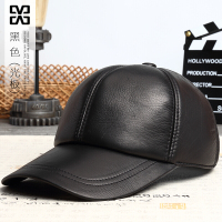 真皮圆顶棒球帽男士中老年人韩版鸭舌帽男秋冬季户外薄款单皮帽子黑色光板牛皮均码可调节