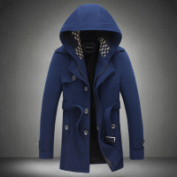 秋冬男士短风衣连帽脱卸韩版外套大码男装男式修身毛呢