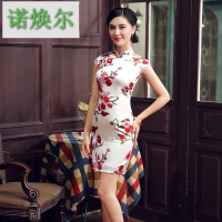 诺焕尔服饰2017新款重磅真丝旗袍桑蚕丝复古旗袍裙短款立领红色AAFZFYC-2红色