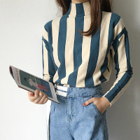 珂依舍2017秋装新款2017秋冬新款韩版拼色打底上衣圆领套头针织衫女毛衣潮