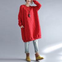 秋冬新款简约文艺夹丝棉圆点宽松针织套头女卫衣裙中长款连衣裙潮
