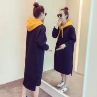 加绒加厚连衣裙2017秋冬韩版新款chic风开叉长款宽松连帽卫衣裙女图片色【加绒加厚】