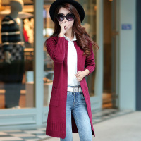 普美思 针织衫女开衫2017秋季新品中长款韩版休闲宽松针织衫女毛衣开衫外套