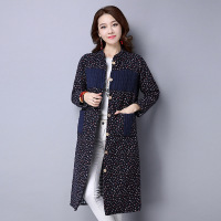 顺崇2017冬季立领开衫中长款修身显瘦棉服草莓叶碎花大码棉衣