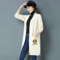 中长款开衫外套女2017新款秋冬女装线衣开叉针织衫外衣图案毛衣秋