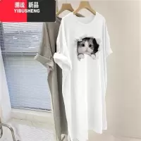 YIBUSHENG中长款过膝白色短袖连衣裙女2024新款洋气宽松开叉t恤裙子