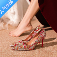 • SUNTEK婚鞋女2022新款红色婚纱晚礼新娘鞋红秀禾秋季高跟鞋中式结婚绣花