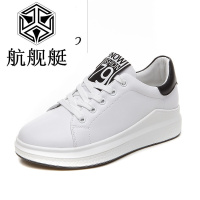 小白鞋女秋季新款韩版潮圆头学生系带板鞋平底黑白休闲运动鞋青年厚底内增高女单鞋子