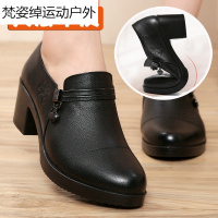 春秋妈妈鞋真皮软底2017新款粗跟中老年中跟百搭中年女鞋单皮鞋女