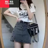 YIBUSHENG季新款日系美式复古卡通正肩短款圆领短袖T恤上衣女2024年辣妹
