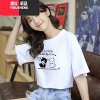 YIBUSHENG白色短袖t恤女装宽松半袖2024新款体恤打底衫印花百搭上衣