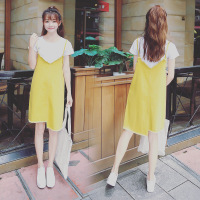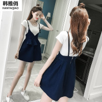 韩雅俏(HANYAQIAO)2018新品春夏新款背带裙女装牛仔一字裙修身荷叶边韩版学生套装裙