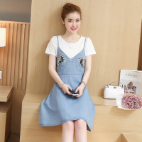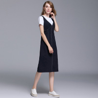 薇侣2017牛仔背带裙新款女装韩版两件套套装裙中长款连衣裙套装