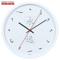 极客库GEEKCOOK圆形金属石英钟表卧室现代简约创意12英寸30.5CM挂钟客厅静音时尚挂表GK110248