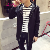 丹杰仕中长款风衣男士薄款春秋季外套2016韩版修身长款披风男学生休闲大衣开衫长款卫衣 小咖秀百搭潮