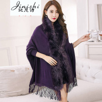 冬欧美新款女装大码针织开衫斗篷外套仿狐狸毛皮草披肩斗篷黑色均码