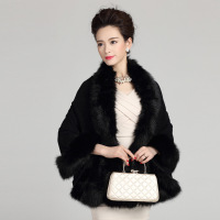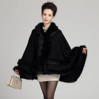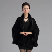 秋冬欧美新款女装大码针织开衫斗篷外套仿狐狸毛皮草披肩斗篷黑色均码