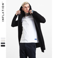 【硬汉风格】2018春装欧美薄款加长设计男式连帽长袖斗篷情侣针织开衫