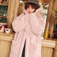 旗下新款韩版秋冬獭兔毛皮草外套中长款毛毛连帽牛角扣毛绒大衣女