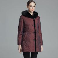 旗下中老年尼克服女獭兔内胆中长款连帽皮毛一体外套皮草妈妈装