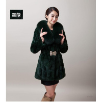 女士皮草 2017海宁狐狸毛领獭兔毛妈妈款皮草女中长款外套特价