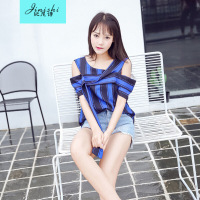 纪尼诗(Jinishi)女装2017秋夏季新款女装季秋季韩版百搭条纹上衣