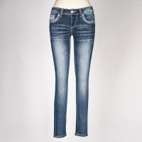 四季常规上班绣花青年长裤修身小脚铅笔裤水洗年微弹拉链中腰牛仔裤