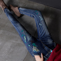 薇侣2017新品刺绣牛仔裤女长裤秋装新款韩版宽松学生铅笔裤高腰小