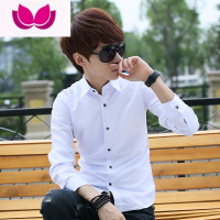 七斓秋季长袖衬衫男士韩版修身青少年白色衬衣潮流男装寸衫纯色外套男