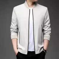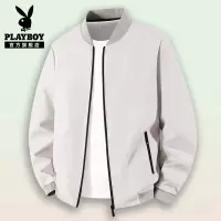 花花公子2025秋季男士棒球领夹克衫中年商务行政茄克衫纯色外套C