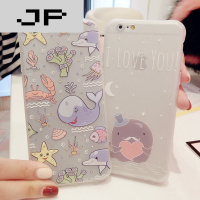 JP潮流品牌鲸鱼iphone6s手机壳可爱日韩苹果6plus软壳tpu透明磨砂浮雕5.5潮