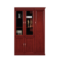 鸿业盛大FSC-605简约现代右三门书柜环保红檀泰柚贴木皮拆装办公储物柜1350*420*2000多功能文件柜