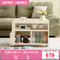 全友家居奶油风客厅餐厅小推车精细分区储物灵活万向轮沙发边柜
